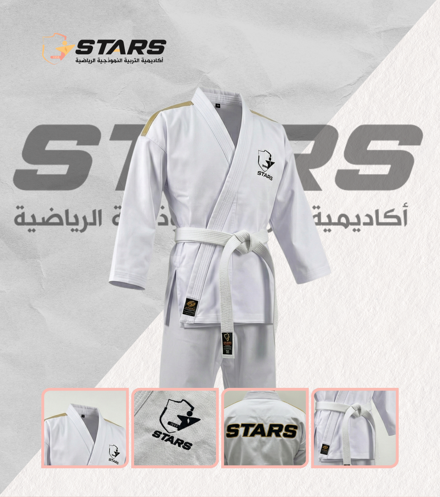 بدلة كاراتيه مقاس 120 لـ الفئة العمرية 7 سنوات ، مخصص للاستخدام في حصص الكاراتيه داخل الأكاديمية. يأتي بالطقم الكامل المعتمد للتدريب ويتكوّن من: