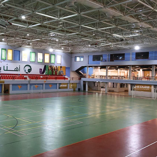 غرف تبديل ملابس مجهزة لخدمة اللاعبين.